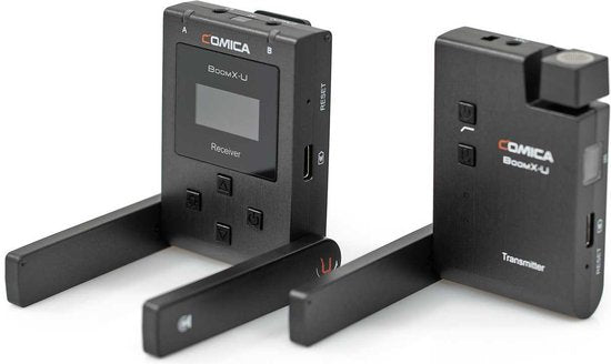 Ontworpen voor mobiele journalisten, videografen en vloggers, is de Comica BoomX-U U1 een compact, echt draadloos microfoonsysteem met een microfoon en één ontvanger. Het levert betrouwbare transmissie met een helder geluid op een afstand tot 100 Meter en biedt een complete oplossing voor het opnemen van dialogen, interviews en spraak met twee mensen die tegelijkertijd praten - rechtstreeks naar een spiegelloze/DSLR-camera, camcorder of een mobiel apparaat.