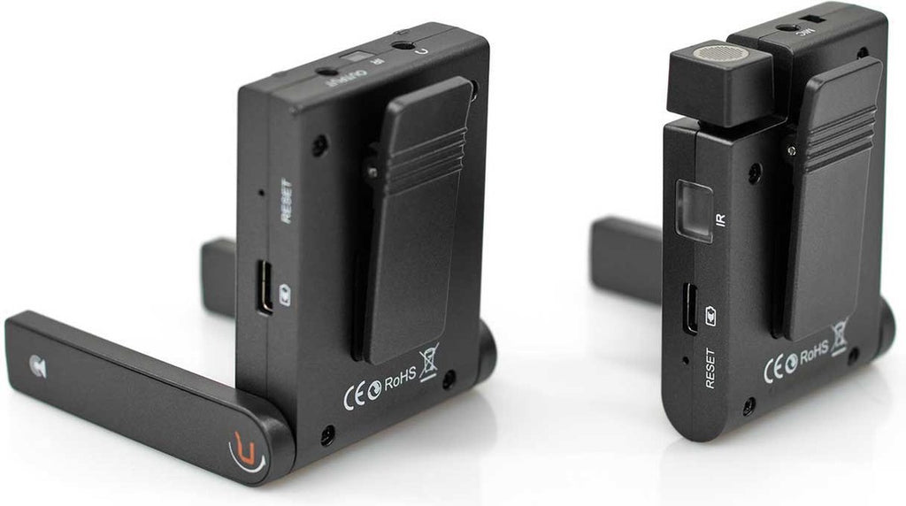 De zender is uitgerust met een ingebouwde omnidirectionele microfoon en een 3,5 mm microfooningang die geschikt is voor de meegeleverde op speldmicrofoon.